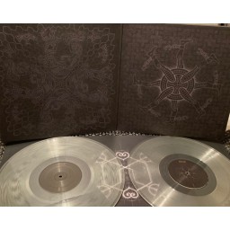 Crystal clear and black marbled 12" double vinyl (33rpm) in deluxe gatefold printed on unfinished, heavy card stock with gold foil, with innersleeves printed on unfinished, heavy card stock.